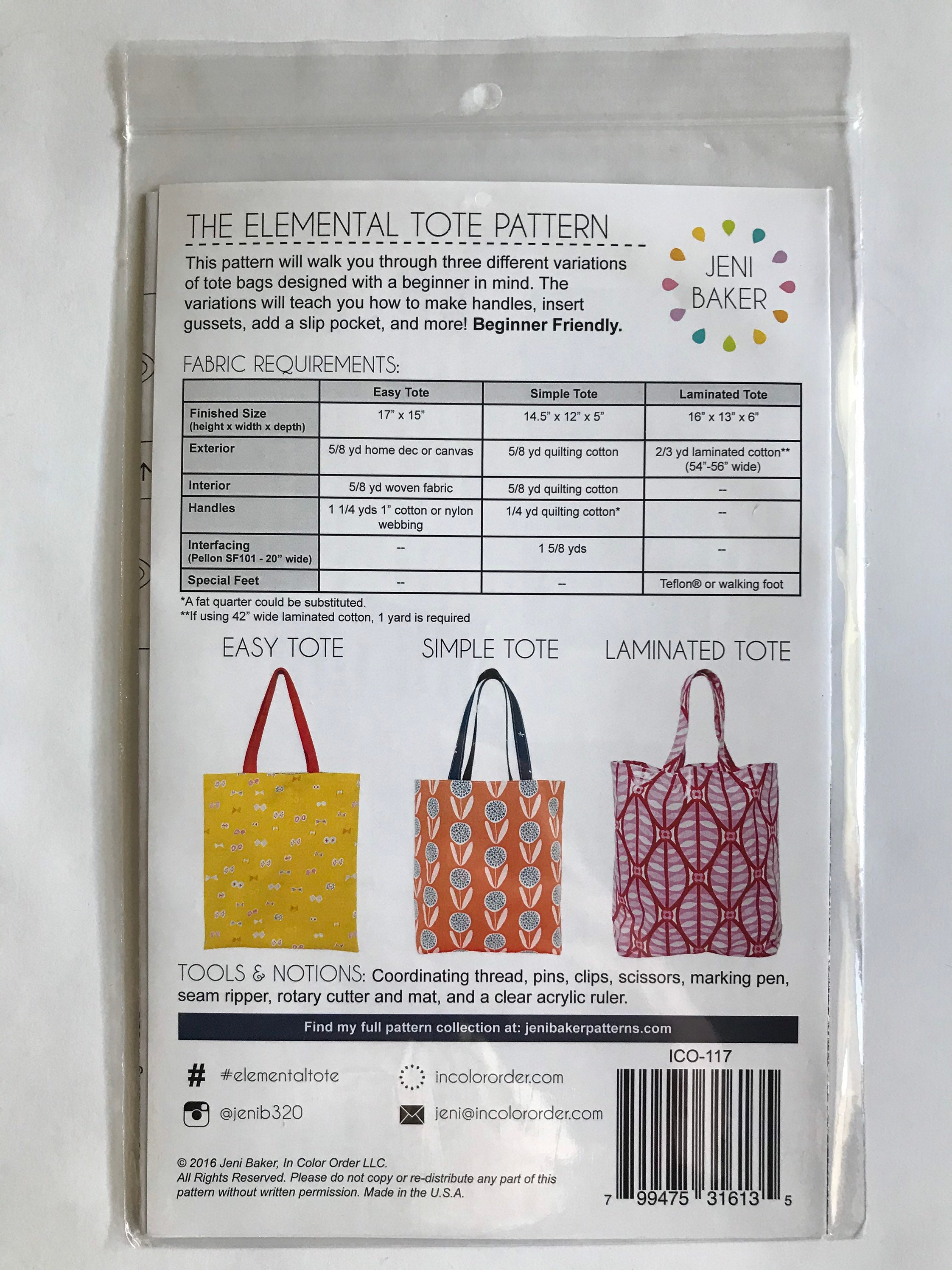 The Elemental Tote Bag Sewing Pattern By Jeni Baker Etsy Canada